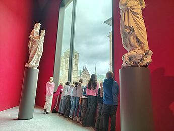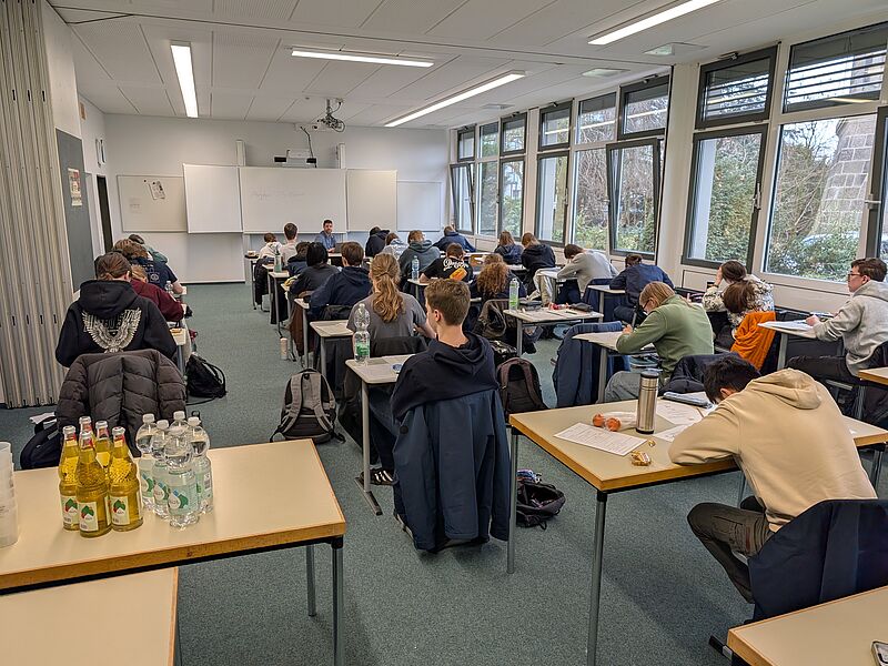 Die Klausuren wurden an zwei Standorten ausgetragen: Während die Jahrgänge 5 bis 9 ihre Aufgaben in den Räumlichkeiten der LVM-Versicherung bearbeiteten, traten die älteren Teilnehmenden im Wilhelm-Hittorf-Gymnasium an.