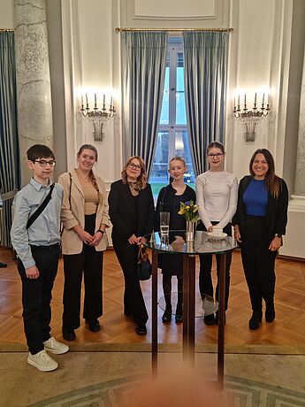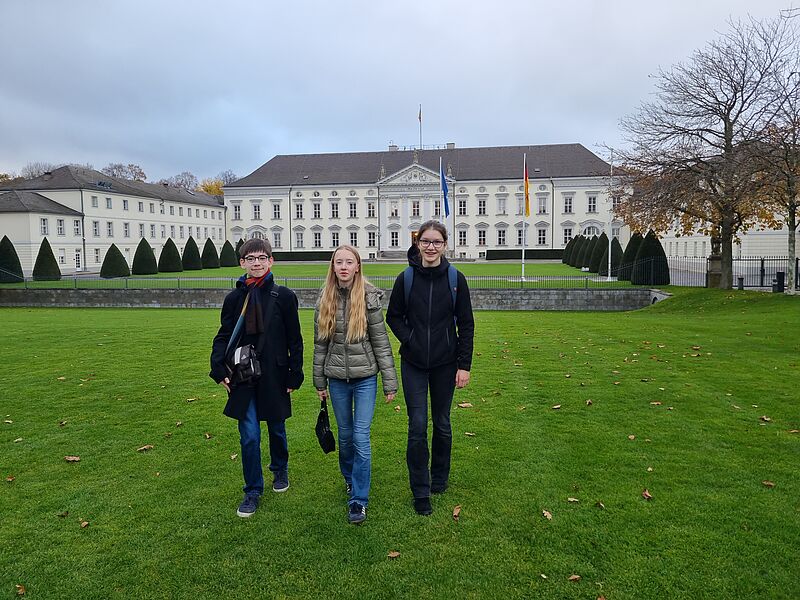 Nach Berlin begleitet wurden die drei Achtklässler:innen von Sophie Reinhart, zwei studentischen Tutorinnen und unserem Schulleiter Torsten Korfsmeier, um bei dem Festakt und der besonderen Auszeichnung live dabei sein zu können.