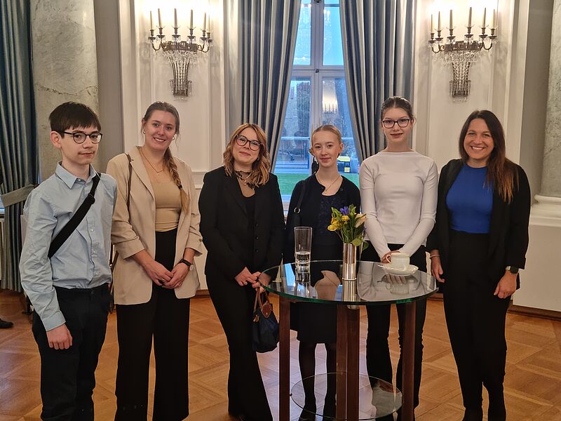 Am heutigen Dienstag, dem 11.11.2025 wurden die drei Hittorf-Schüler:innen vom Bundespräsidenten Frank-Walter Steinmeier persönlich ausgezeichnet und durften im Schloss Bellevue ihr Projekt "Das Gesellschaftsspiel: UTOPIA? Die Stadt der Täufer - soziale, politische und moralische Grenzen in Münster (1533-1536). Drei Perspektiven“ vorstellen.