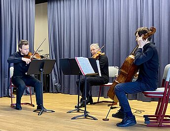 Zu hören war unter anderem Musik von Ilse Weber, der Dichterin, die ihre Texte selbst vertonte und mit Kindern im KZ Theresienstadt sang - sowie das Streichtrio von Gideon Klein, basierend auf einem metrischen Volkslied aus dem KZ Auschwitz.